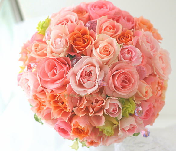 サーモンピンクのドレスにあわせてお作りしました。