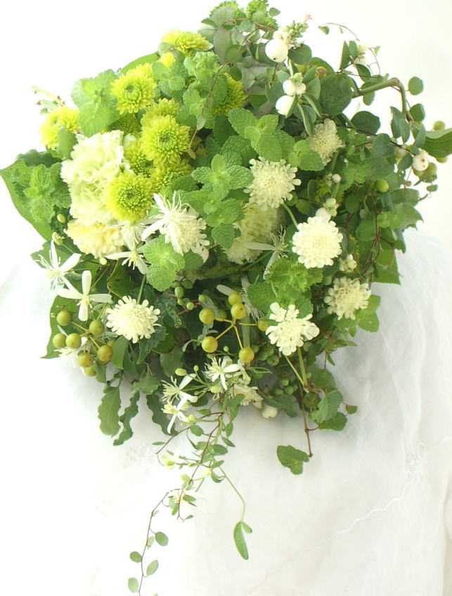 ハーブとグリーンをたくさん集めたナチュラルなブーケ。