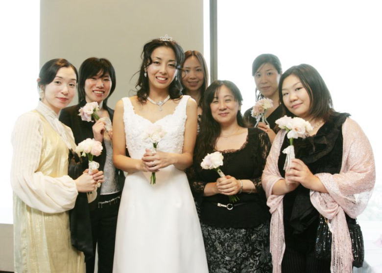 の新婦様より、シェアして皆さんが持っている様子のお写真を