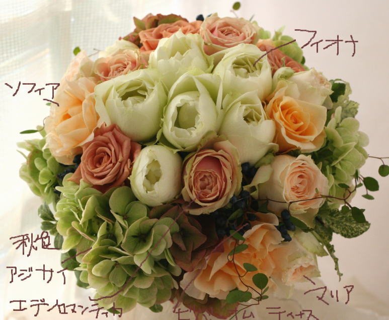 たった20数センチの中に、いろんな花をぎっしりと詰め込んで
