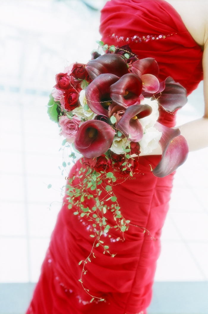 赤いカラーのブーケも、こんなにドレスにぴったりだったんですよ!