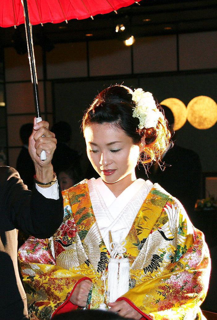 白無垢の時は白のみ、色内掛けの時にはグリーンも足して使用しました。