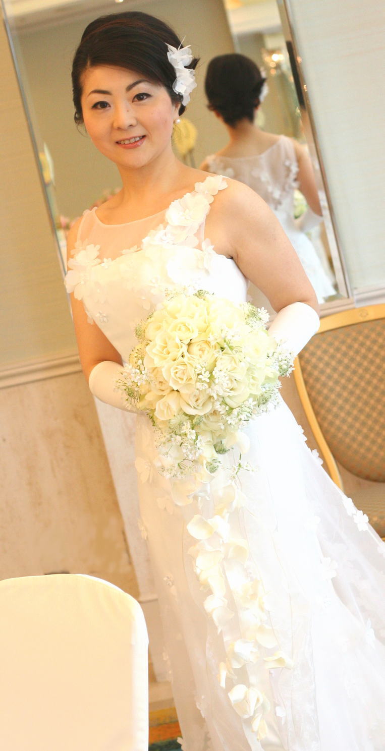 1000枚近い花のモチーフをあしらったドレスにあわせて