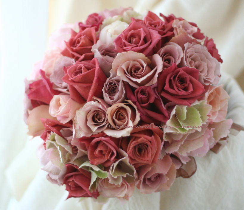 少し、シックなピンクから赤と紅茶色のグラデーション。