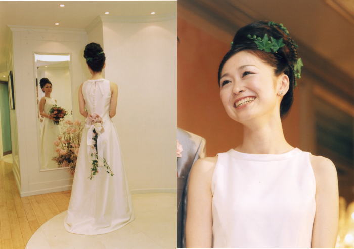 文中に出てくる「植木鉢」は、お色直しのヘアスタイルに