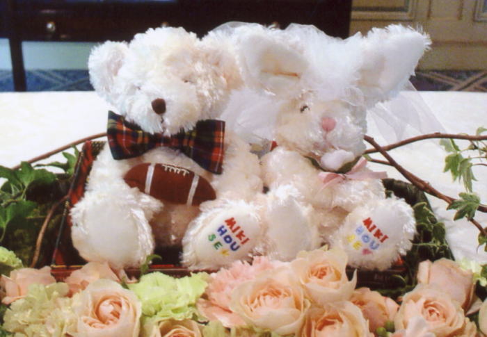 「ソーセージ熊」は、お母様お手製のウエルカムうさぎ&くまのことです。