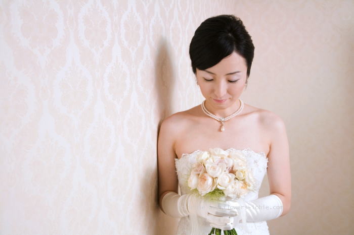 別の花嫁さんが一会さんのお花を持って撮影されていて
