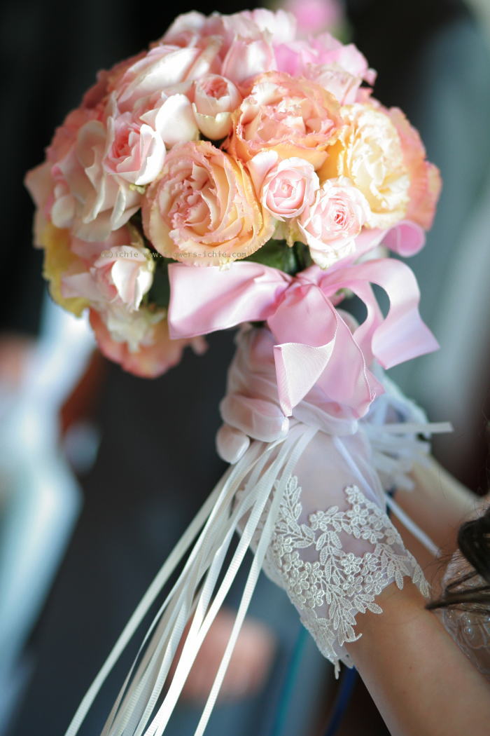 ピンクのカラーブーケはおまかせでお願いしたのですが、