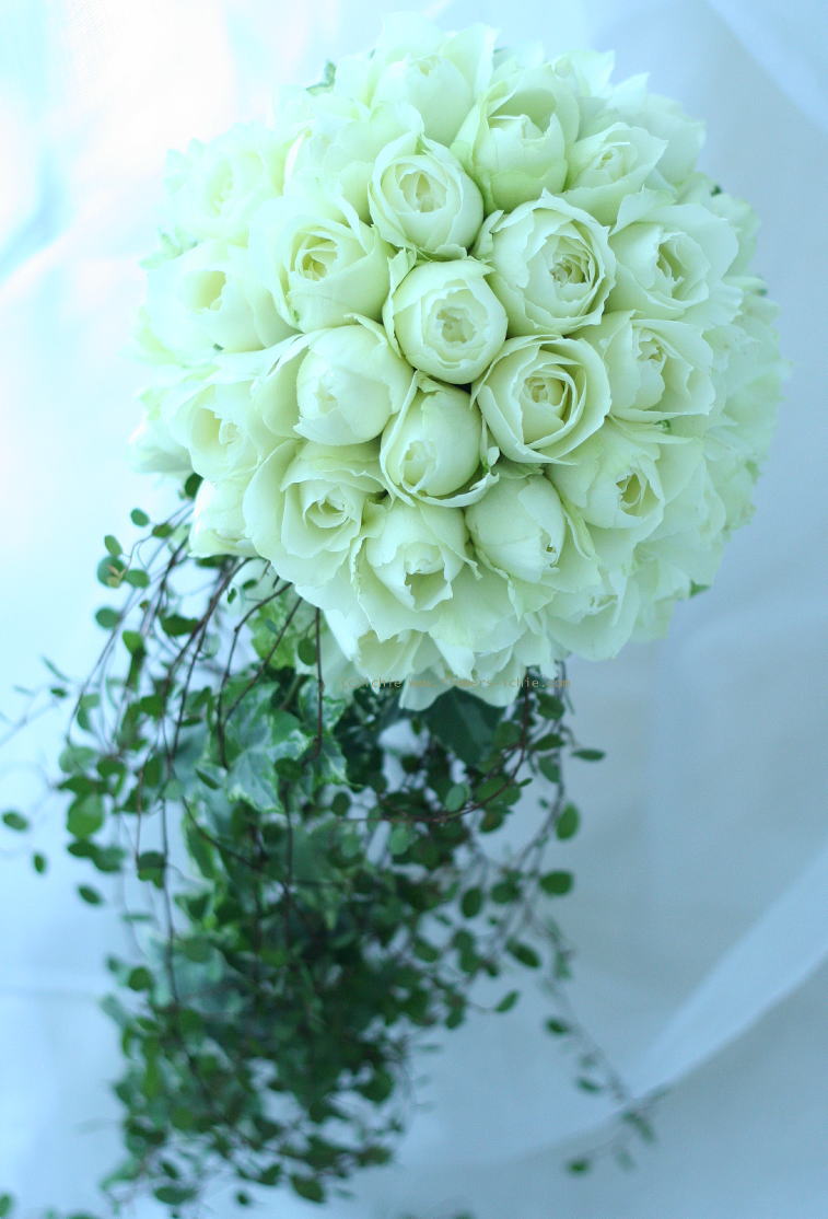 白くて丸い、ころんとしたバラばかりを集めたブーケ。