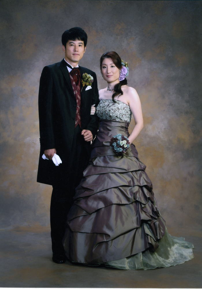 前撮影用の、微妙な色あいの存在感のあるドレス。