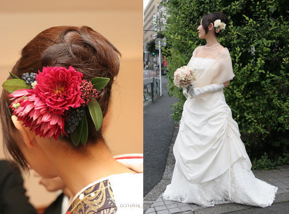ダリアのヘッドドレスは着物とぴったりと褒めてもらいました!