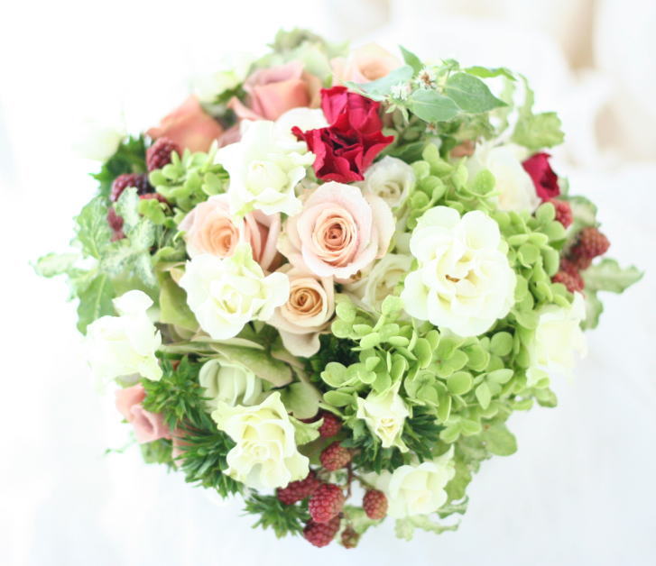 バラにあわせたブーケ。