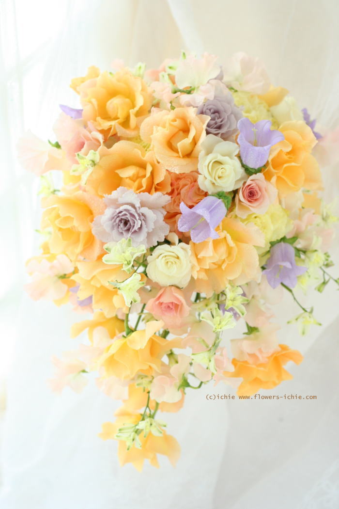 ゆったりと流れ落ちるようなこのブーケの形を