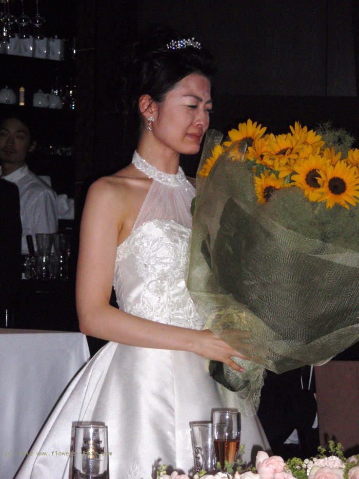 こちらはマジ泣きしそうになった1枚。サプライズで新郎様から新婦様へひまわりの花束を渡されたときの1枚です。詳しくはこちらの記事に載っています。