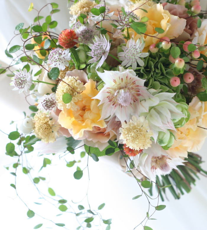 美しいブーケを手にして、