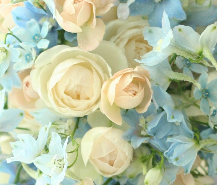 挙式のブーケは淡い青に