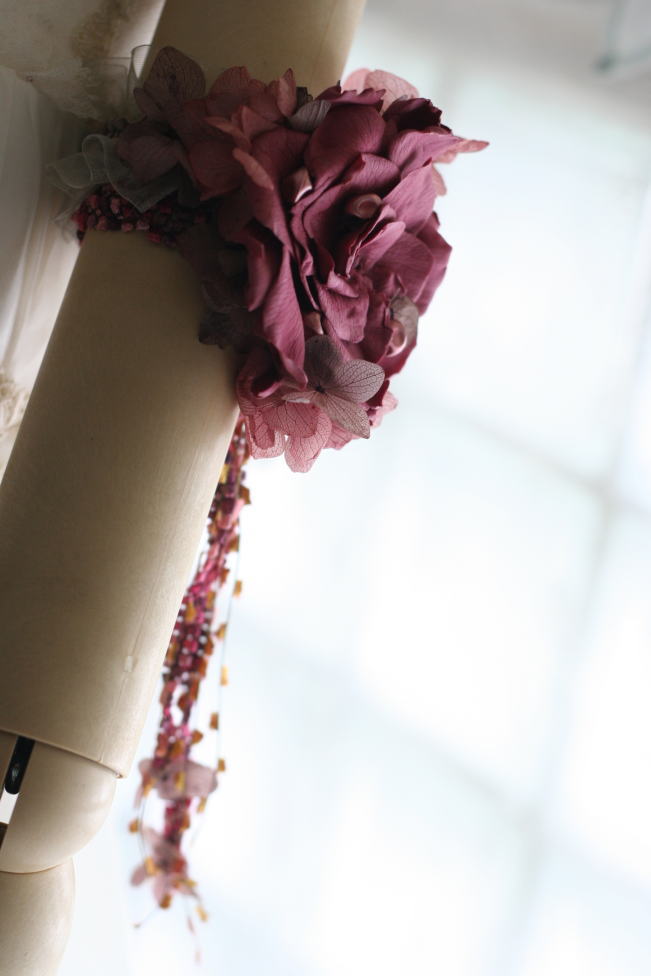ワイン色のアジサイの花で作った