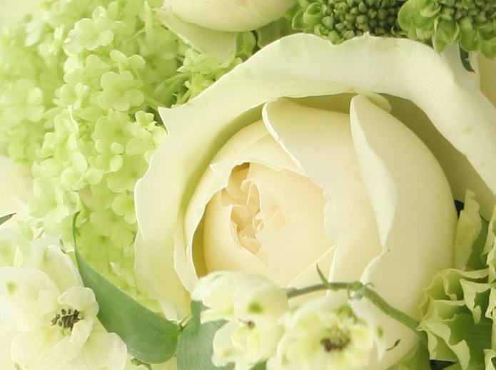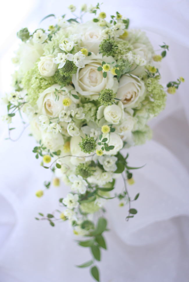 こちらは白ブーケの全体図。ふわふわしたのは「夢ほたる」、という草花です。
