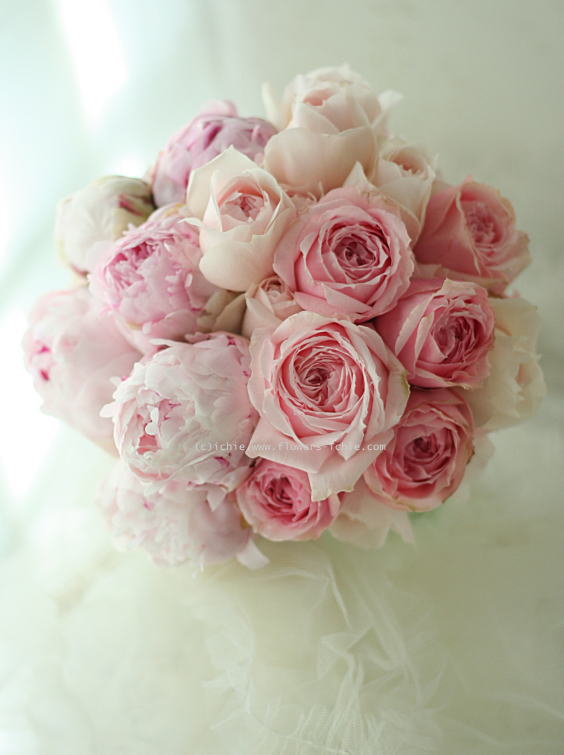ピンクの芍薬とオールドローズだけで。