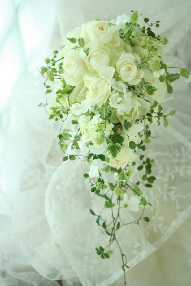 清楚でナチュラルな白のブーケは、