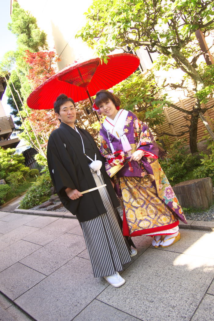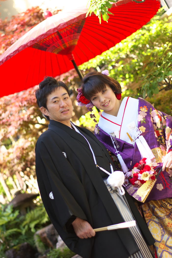 「和装のブーケ:扇もしくは手まりブーケ」です。