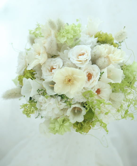 ツリガネみたいなのはカンパニュラのプリザーブドです。