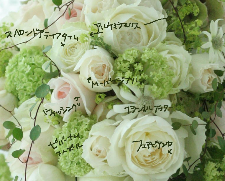 写真は、その6時ごろ、最後の手直しをしていたブーケ。