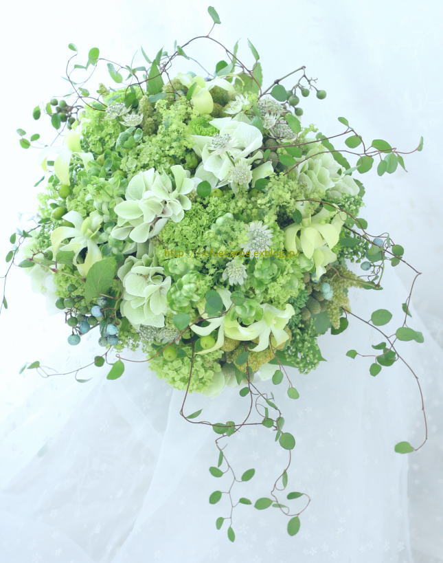 グリーンをメインに作る、クラッチブーケ。
