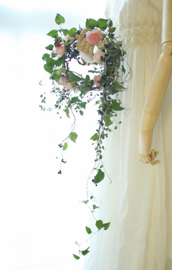 自然な感じのリース型のウエディングブーケ。