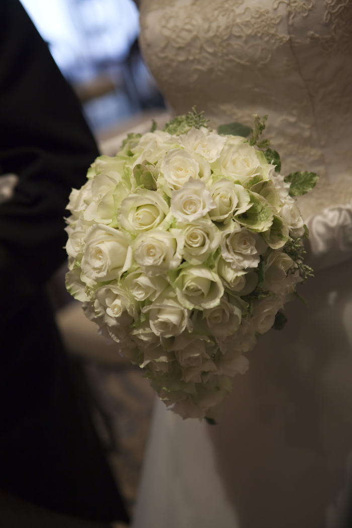 お色直しのウェディングドレス用の白ブーケは、リクエスト通りのバラで、