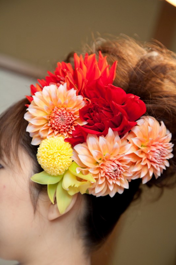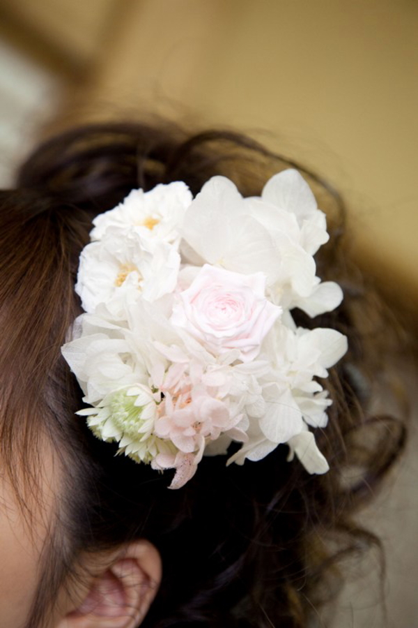 和装に生花のブーケ・・・は叶えられませんでしたが、