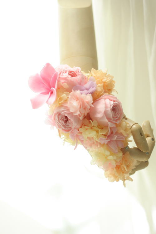 ブーケと一緒に手首につけるようなワンポイントの花は