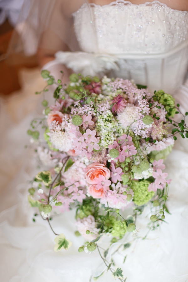ドレスと私にぴったりのブーケに仕上げて頂き