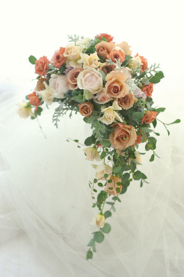 少し小ぶりめ、翠と紅茶色のクレッセントブーケ。