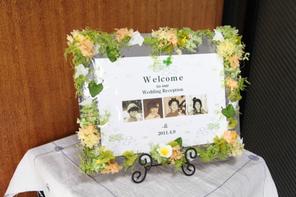 ウエルカムボードにもお揃いの花で。