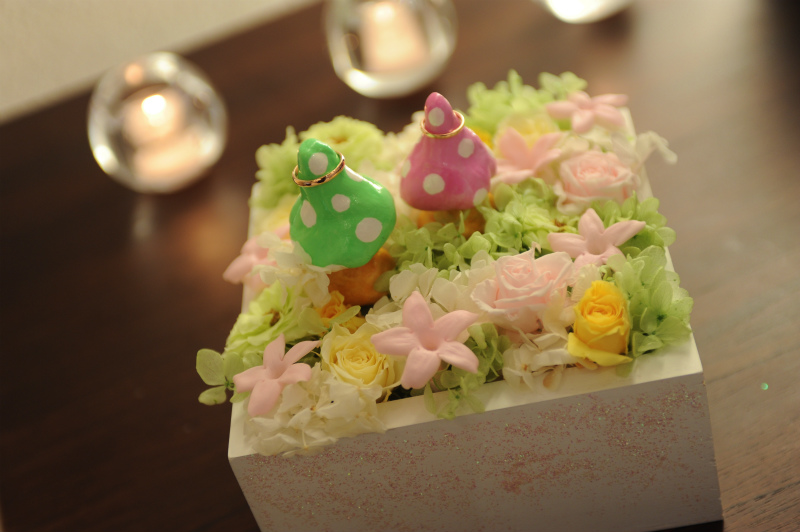 プリザーブドのリングピロー。
