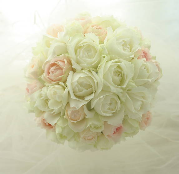 ほんのり淡いピンクをいれた、ラウンドブーケです。