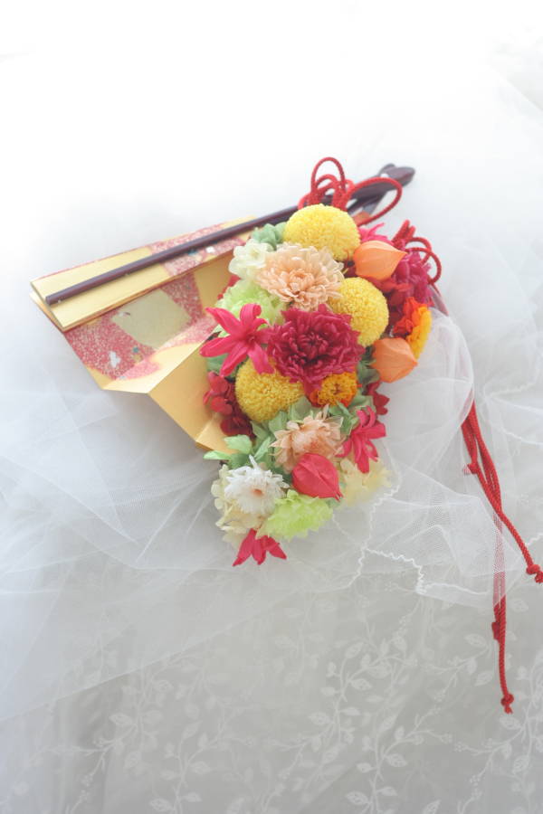 この扇にあしらう和装用ブーケを知ったのがきっかけで