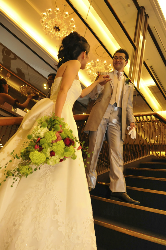 花で色直しをする、という、まさに結婚式だけの贅沢。