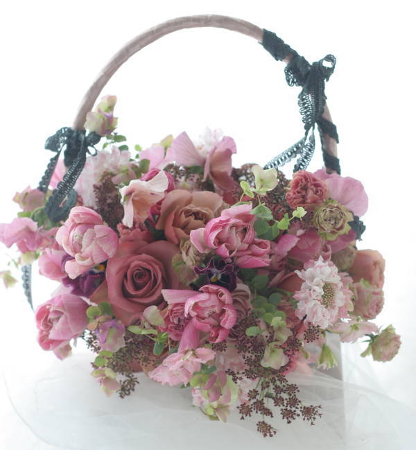 くすんだ紅茶色と、セピアピンクのバラをいれてという
