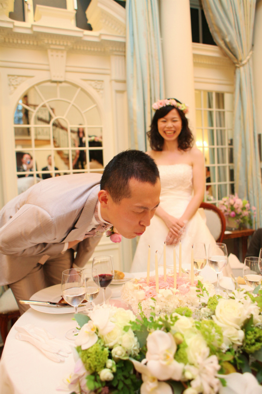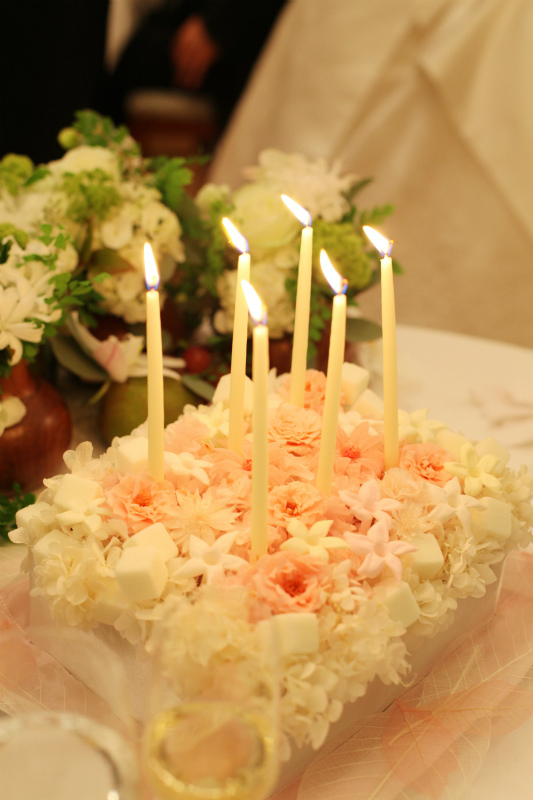フラワーケーキも今日誕生日の新郎にサプライズとして渡すことができ、