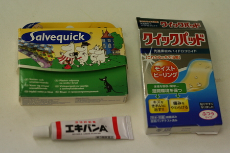 ムーミンバンソーコーを並べて撮ってみたところ。