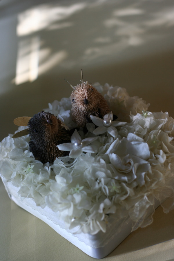 うさぎがリングの枕にしているジャスミンの花は