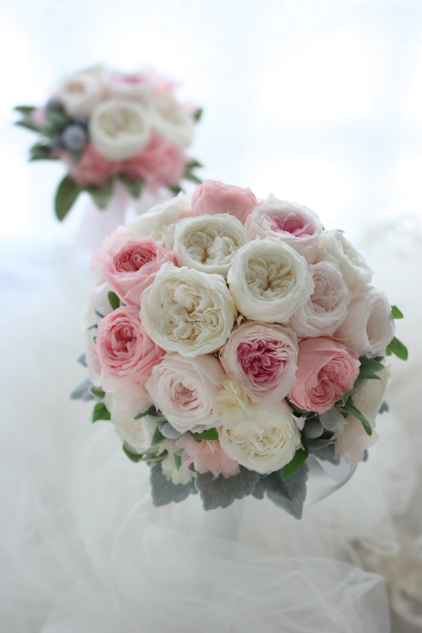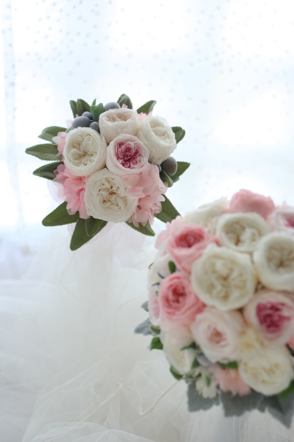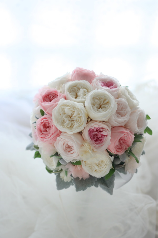 淡いピンクのグラデーション、プリザーブドフラワーのブーケです。