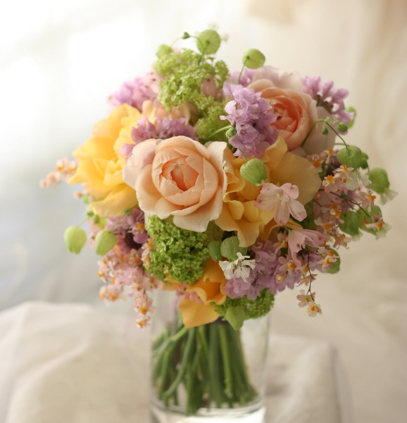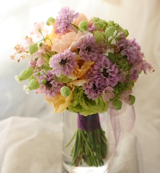 一会では「このブーケはリボンが正面です」「リボンが自分側です」