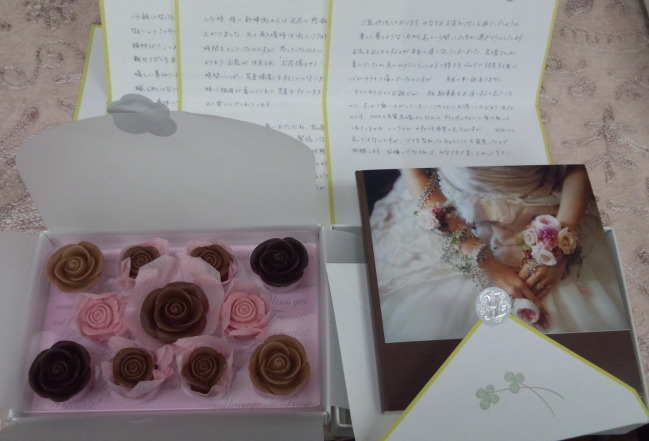 たくさんの文字がつづられたお手紙と、バラのチョコレートと、