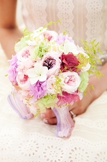 一会のブーケと会場装花を届けさせていただいた
