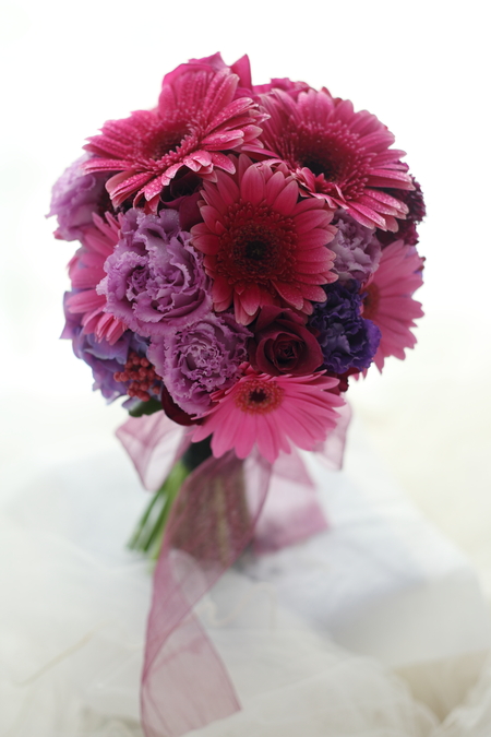 いろいろなカラフルな花がたくさん舞う柄のドレスに。