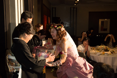 単発レッスンに参加して、ご両親への花を手作りされるときに