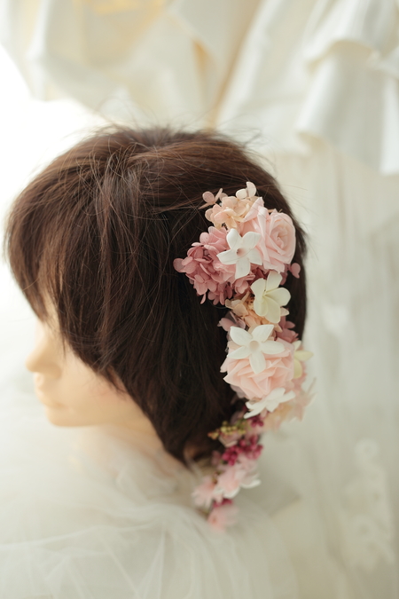 髪の片側に流す長い花飾りです。